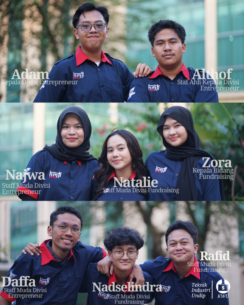 Meet Bidang KWU !They plays a big role in growing the interpreneurship and business vibe among Industrial Engineering students at UNDIP. They’re here to support studentpreneurs, provide all sorts of needs for Industrial Engineering UNDIP students, and help fund awesome programs in HMTI. Basically, They hustle so HMTI can keep running strong! 💼🔥